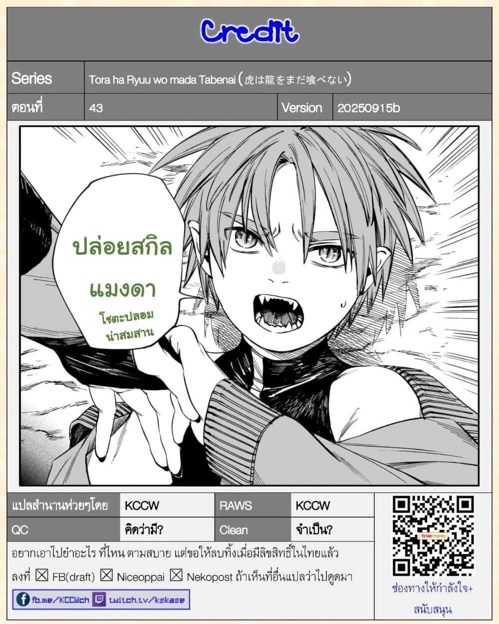อ่านการ์ตูนมังงะเรื่อง Tora ha Ryuu wo mada Tabenai 43 และตอนอื่นๆของเรื่องนี้ ได้บนเว็บอ่านมังงะ one-manga.com ที่มีมังงต่างๆให้อ่านมากมาย รวมถึงมังงะสุดพิเศษ Exclusive เฉพาะที่ one-manga.com เท่านั้น!